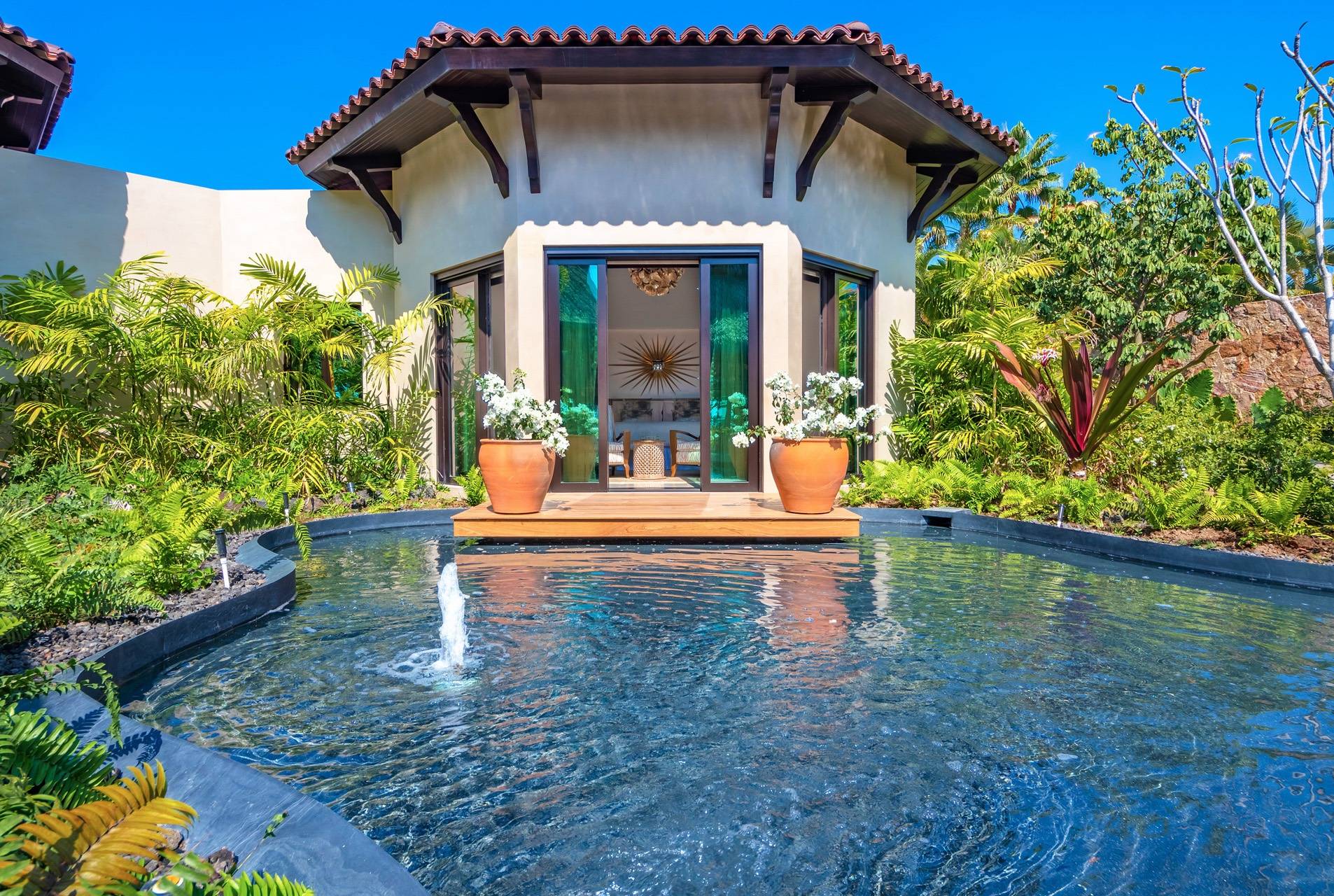 • Master Suite 1 “Suite WIRIKUTA” 1 King Bed with one full bath with separate vanities, and one half bath powder room, Family Room with 8k TV, Grand Master Bath, Private Moon Garden w/Jacuzzi