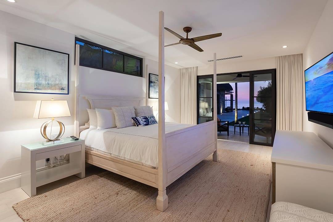 • Bedroom 4 – Guest Primary: King size bed, Ensuite bathroom with stand-alone shower, Dual Vanity, HD TV, Control 4 sound system, Ceiling fan,Air conditioning, Private balcony, Safe, View of Pacific Ocean